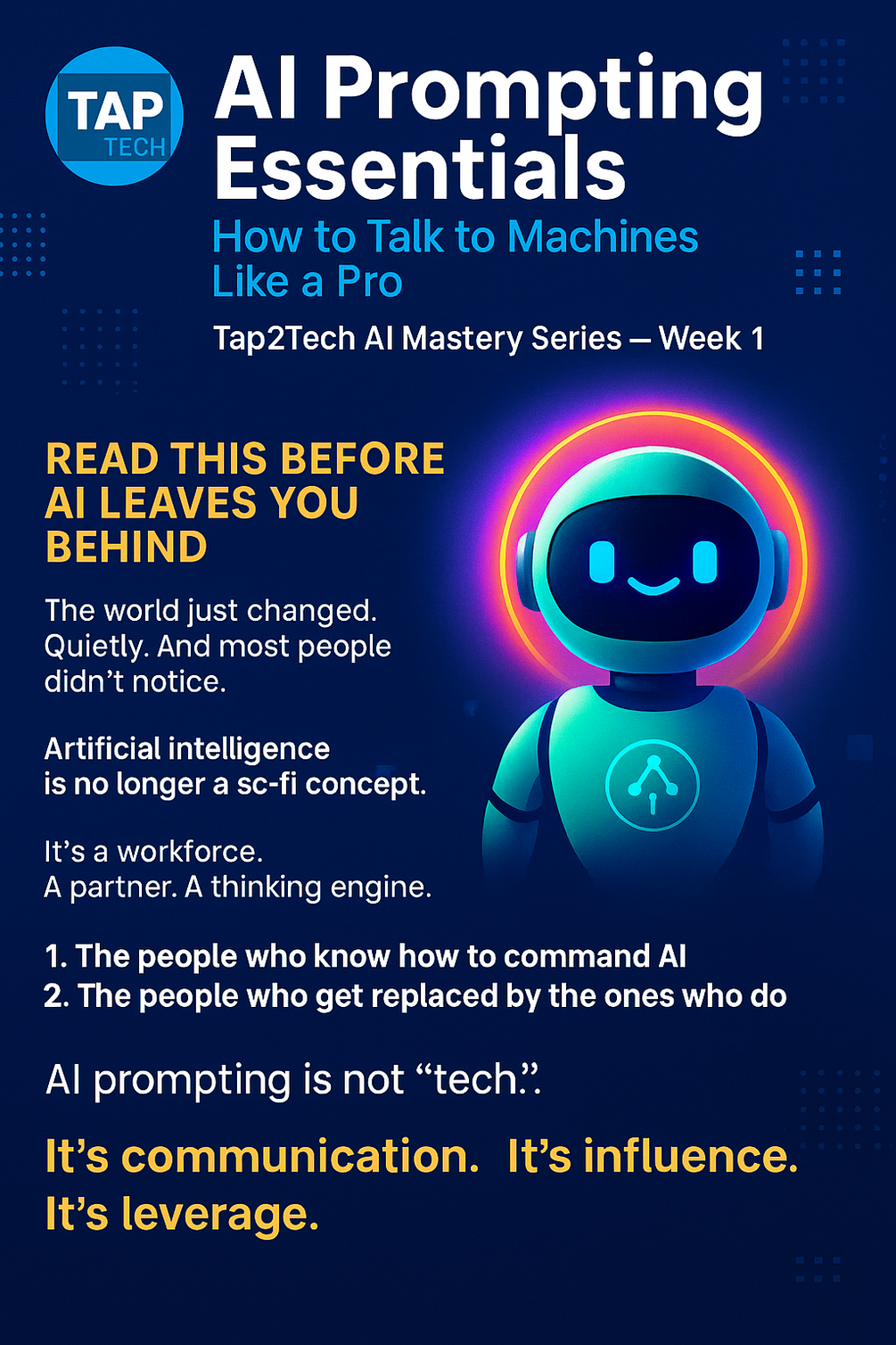 TAP2TECH AI MASTERY SERIES – WEEK 1 AI PROMPTING ESSENTIALS How to Talk to Machines Like a Pro